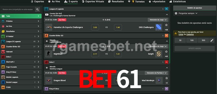 O bet61 oferece uma grande seleção de opções de apostas em e-sports com probabilidades competitivas